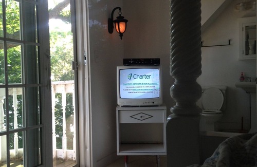 The Main House, a Victorian Queen Anne home features 3 bedroom suites each with its own private bath and built in 4 corner poster beds, televisions and ceiling fans. The two upstairs bedrooms have their own balconies overlooking the lake views from bedrooms and bathrooms. One features a fireplace, extra single bed and Jacuzzi tub. The downstairs bedroom has an air conditioner and is split level with mahogany wood cathedral ceilings over the bed with a fireplace with seating area and Belgium tapestry on the walls. The living room overlooks the lake and has a fireplace and historic American Indian paintings, formal dining room with attached eating porch and second living room with piano, all have lake views. Kitchen has gas stove, fridge, microwave, dishwasher, coffee maker, toaster, blender, dishes, etc. There's an entry and oversized brick patio. Basement has a laundry room. Sleeps 9 and includes linens.