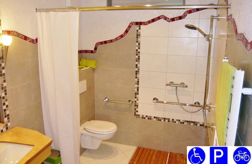 Our apartment house has been specially built for people in wheelchairs or with mobility restrictions. Since the hostess of the house sits in a wheelchair and the host is a gifted craftsman and master carpenter, an incomparable, creative, barrier-free dream vacation house has emerged from this house.