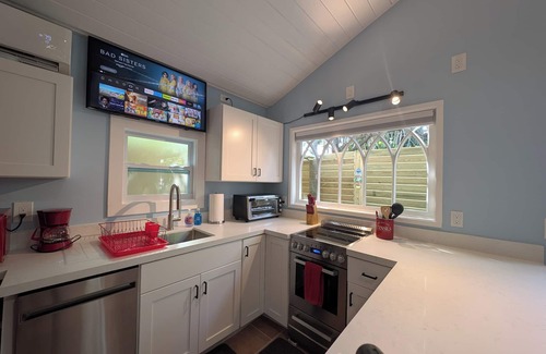 Outside your Sanctuary is a private seating and dining area to enjoy the beautiful weather Key West has to offer. In the back of the unit you have access to an outside shower to rinse off from a day at the beach along with a full size washer and dryer.