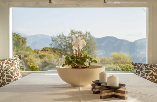 In the rolling countryside of Andalusia, a few kilometers from charming towns of Antequera, Archidona, Casabermeja, and Villanueva del Rosario, the rural estate El Chaparrillo is located on a 125,000 m² plot of land and offers a spectacularly private oasis of holiday relaxation. The rustic vacation home consists of a living room, an adjacent dining area with floor-to-ceiling windows, a very well-equipped kitchen with a dishwasher, 4 bedrooms (one with a bunk bed and one with 2 single beds) as well as 2 bathrooms and can therefore accommodate 8 people. Additional amenities include Wi-Fi, air conditioning, television, a cosy fireplace, board games, a baby cot (upon request) and a highchair. In the outdoor area, guests are invited to relax on the covered porch and enjoy delicious meals together in the fresh air. Sunbathe in your garden on warm afternoons and refresh yourself in the pool (open all year long), which has a step as a safety precaution for children as well as gorgeous views over the surrounding wooded landscape. For a selection of shops, restaurants, cafes and bars, drive 15 minutes (7.5 km) to the centre of charming town Villanueva del Rosario. The heart of Malaga and its beautiful beaches are a 40-minute drive away, while Granada and Cordoba are about 1 hour from the property and Sevilla is 2 hours away. Perfect for someone interesting in exploring the region!