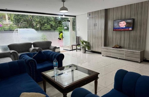This Islamabad house boasts 6 inviting bedrooms with 6 full beds. The tranquil ambiance and fabulous amenities like WiFi, heating, garden, internet and AC make it a perfect retreat for guests. With 6 bathrooms featuring showers and bidets, there's plenty of space for everyone. Two additional living rooms with futons offer extra comfort, extra mattresses are free of cost. Our place will help you feel at home while you're traveling in Islamabad.
