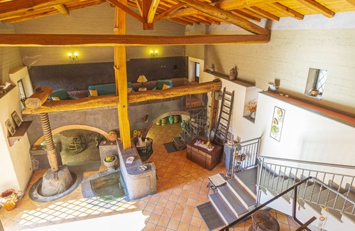 The structure and the charm of the Palmento have been maintained and so the press dominates the main room. The interior is on two levels and is composed as follows: