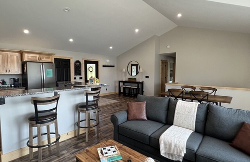 Book a long weekend, a week, or even a month with your family & friends! Our home, also known as Larry’s Lodge, was built as our 2nd home and we want it to feel the same for you! Larry’s can sleep 12 comfortably, but 14 in total – including a queen-size pull-out sofa, all bedrooms have a view of the lake and with three full bathrooms there’s no waiting in line to take a shower! A pack n’ play, various kids’ toys and crafts are kept at the house, so you do not have to tote yours along. On chilly evenings, gather around the stone fireplace on the main level - turned on with just the flip of a switch. And, if you really need to work, there is a workstation available with a monitor!