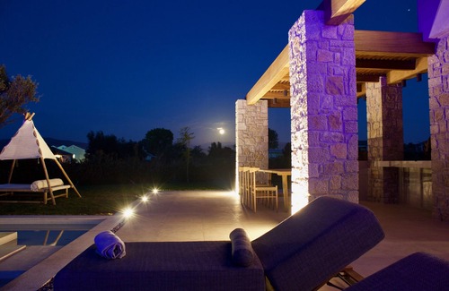 Allure Retreat Villas hold an extraordinary location, offering perpetual views to the Ionian sea and Lefkada Lagoon. An assemblage of two constructions with hand-picked detail in the heart of Lefkas olive grove,just 8 minutes walk from Agios Ioannis sandy beach. Built to perfection in 2021, a modern approach of Mediterranean grace featuring tropical elements creates a holiday retreat that soothes the mind. Sit back on the sun loungers next to your private pool and let the summer days pass by.