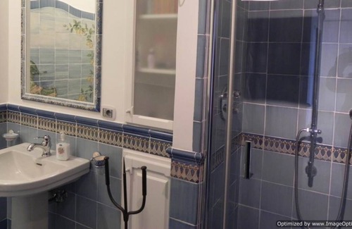 •Second bedroom with a double bed and an ensuite bathroom equipped with a shower cubicle, a washbasin and a toilet. French doors lead onto the main terrace. The terrace is shared with the guests staying at the two apartments of the villa. You will reach it along an external stairway of approximately 50 steps FURORE 3: