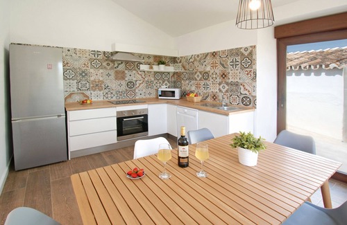Casa Maria has 3 bedrooms and 2 beautiful bathrooms, 1 en-suite with the master bedroom with bathtub and another with shower, a bright living room with woodstove and smart tv, an open kitchen with dishwasher and an extra room with washing machine. There are shutters everywhere.
