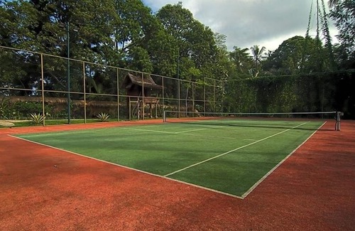 The guest party can entertain in the main lounge, view pavilions, garden courtyards or barbecue terraces. At the same time members of the party have the freedom to relax privately on day beds and verandas. Children tend to gravitate to the movie theater for the large screen Playstations but can be coaxed outside for other enjoyments. The large Pool centering the Villa is secluded, private and the focal point for relaxation. Snooker, Pool and Caroom are particularly popular in the daytime and the open billiard room is located conveniently to both the pool and replenishing point for refreshments. Tennis is best played in the mornings, late afternoon and evenings with a professional coach available by appointment. Increasingly popular is Yoga and the view pavilions are particularly suited to this. Bali has attracted a lot of excellent trainers, particularly in the Ubud area, and sessions can be arranged for both Astanga and Classical Yoga. The villa maintains a good supply of mats