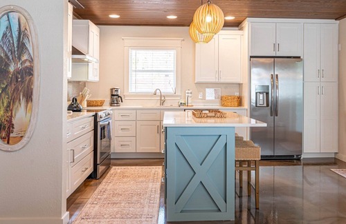 Escape to Anna Maria Aloha, a designer-inspired, ground-level vacation rental nestled on the highly sought-after North End of Anna Maria Island. This charming beach block cottage is located just 500 feet from the pristine white-sand Gulf beaches—no roads to cross—making it one of the best vacation homes on Anna Maria Island for families, couples, and beach lovers alike.