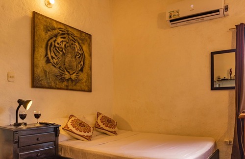 Acogedora cabaña con vista al mar es ideal para 1 o 2 personas, ofrece una cama doble, baño privado, aire acondicionado y cocina equipada. Hay un escritorio en la habitación desde donde puedes trabajar ya que ofrece internet wifi. La cabaña tiene su propio balcón con vista al mar con una mesa y dos sillas desde donde puedes relajarte con la hermosa vista a los famosos atardeceres de Taganga. Ideal para el desconectarse y disfrutar de la vista. Tiene su entrada independiente. Ubicada en el tercer piso de la Casa de Piedra.