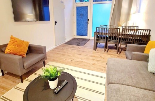 The former commercial unit is centrally located in Hamburgs most trendy district Winterhude and was turned into a 1 bedroom apartment with direct street access. Located on the ground floor and on approx. 45 m² there is space for up to 7 people. The bright living area offers comfortable sofa elements that can be converted into single beds and flat screen TV with Amazon FireTV Stick and DVB-T TV. The kitchenette is fully equipped with dishwasher, inductive hob, microwave, fridge with freezer, coffee maker, kettle, toaster and a large dining table. The seperate bedroom features two large double beds and lots of storage. The bathroom offers a shower/WC. Explore Hamburg like a Hanseat (this is how the locals are called) :-) and benefit from the hip neighborhood and the top connection to the city center.