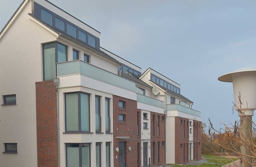 Gate to the sea is a new construction project with 26 residential units. All apartments have either a terrace, balcony or terrace, high-quality furnishings, underfloor heating and controlled ventilation. Several apartments are available as a holiday apartment for rent to guests. On a neighboring property is currently a construction site. The area is prepared for the installation of residential buildings in modular construction. Therefore, it may cause annoyance by the noise of construction equipment.