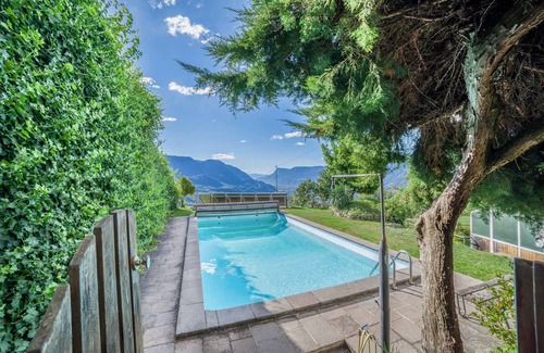 At 750 metres above sea level in the midst of greenery, you will feel absolute tranquillity. A fantastic, sunny view of the surrounding mountain landscape and the Merano valley basin awaits you.