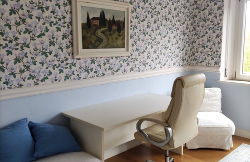 Additional amenities include high-speed Wi-Fi suitable for video calls with a dedicated workspace for home office, a TV, a fan as well as a washing machine.