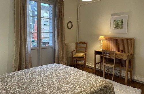 The apartment, the Liberté, is the ideal place to meet up. The heart of Moulins is just a stone's throw away with its shops, cultural sites and its historic district. The building is located in the Médiathèque district, on the square, which is lively on Friday and Sunday mornings with the weekly market. Located on the 1st floor, accessible by stairs, you will enjoy a bright living room, a bedroom with balcony (1 bed 140x200), a fully equipped kitchen, a bathroom (shower) and a separate toilet. The sofa bed in the living room can accommodate 2 additional people on request.