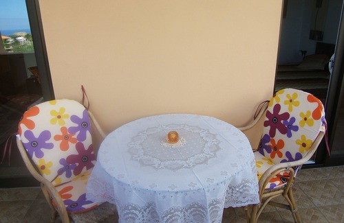 A small breakfast terrace with a great view over the coast towards the northeast to the east. Here you can have breakfast in the glow of the rising sun, if you want it.