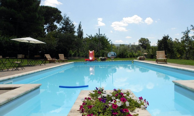 Nestled in a wooded park of 3 hectares, the apartment is in a farmhouse dating back to the 1700s, it is built in a typical peasant style. Surrounded by olive groves, hazel groves, chestnut groves and fruit trees, in a favorable panoramic position, it is the ideal place to rediscover the pleasure of relaxation, trekking, sport fishing or a lesson on horseback.