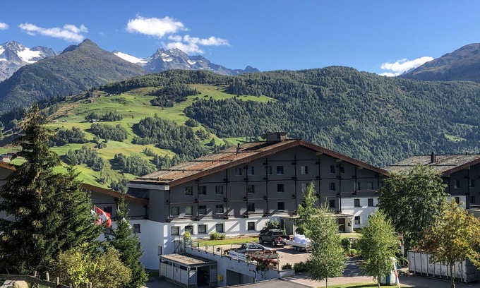 Apartment block "Utoring Acletta", 1'250 m a.s.l.. Above Disentis, in the resort, 2 km from the centre, in a quiet, sunny position on a slope, 700 m from the skiing area. For shared use: indoor pool (24 m2, depth 170 cm). Children's playground. In the house: reception, lounge, table tennis, lift, storage room for skis, central heating system, washing machine, tumble dryer (for shared use, extra). (extra). Motor access to the house (mountain road). Communal covered parking. Dimension: height 195 cm. E-charging station. Shop, supermarket, restaurant 700 m, bus stop "Disentis/Mustér, Pendicularas" 500 m, railway station "Disentis" 2 km. Cable car, ski lift, skisport facilities, slopes 700 m, ski bus stop 50 m, ski school 500 m, cross country ski track 1.5 km, children's playground 1 km. Well-known ski regions can easily be reached: Ski Arena Andermatt/Sedrun/Disentis. Please note: Additional accommodations can be booked. All houses/apartments are individually designed/furnished. Children's ski school near the house. The house and cable car can be reached on skis when there is enough snow. 1 garage space free of charge (max. height 1.95 m), additional garage space CHF 20.00/week. Reception opening times: Monday/Wednesday/Friday: 6:00 p.m.-6:30 p.m Saturday 8:30 a.m.-9:30 a.m. and 4:00 p.m.-5:30 p.m Tuesday/Thursday/Sunday closed.