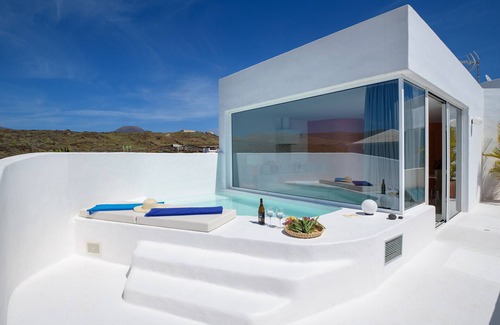 Amazing duplex suite in the beautiful fishing village in the north of Lanzarote island, Punta Mujeres. Enjoy an excellent vacation in this spectacular new apartment suite, with a modern and local design honoring our great artist César Manrique.Large windows, minimalist design with all the comfort: a place designed to dream.Here you will find the perfect retreat for tranquility, relaxation and luxury, away from crowded places. An exclusive corner with all the benefits.The building consists of 3 suites and our Deluxe Suite Pool is the only one with private pool. The pool has the option of being heated in the winter months. Minimum price, €80 (according to length of stay)The hall is shared to go up to the Pool Deluxe Suite, with the other suite The laundry room is for the 3 suites, but we also offer separate laundry service.Cleaning is included during the stay in reservations lasting more than 5 days, with change of sheets and towels.Towels, pool towels, bathrobe and slippers are supplied.Hair dryer and bathroom amenities (shampoo + gel) made from Lanzarote aloe vera.The suite has a living-dining room with a full kitchen, large windows with views of the sea and the pool. The bathroom with shower and natural light, a magnificent room with Smart Satellite TV, a large window with mountain views and another to the pool, make this suite an idyllic place.Free Internet WifiYou can also complete your relaxation with our massage, yoga and other aqua-therapies services.Live an exclusive luxury experience in a Deluxe Suite.We will wait for you!