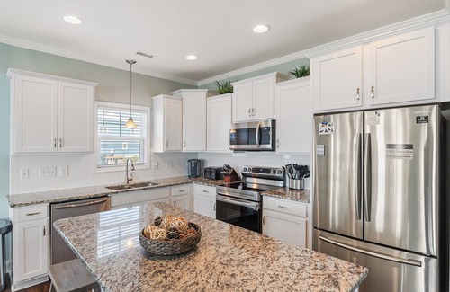 Head over to the dining area and kitchen where the real fun will happen! Family meals can be a lost pastime, but not at this home. The kitchen features granite countertops, stainless steel appliances and all of the tools anyone needs to prepare delicious seafood meals together.