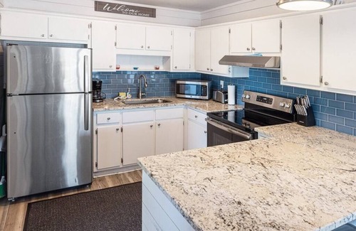 In 2019, Alvarado underwent a complete renovation where the condo was stripped down to its bones and redesigned with stylish finishes and décor that echoed the natural elements of the island. The condo is now adorned with shiplap in every room, a main staple in seaside design, and is decorated with coastal-inspired furniture, art and accents in the living rooms, bedrooms and bathrooms. Each kitchen has stainless steel appliances, granite countertops and a fully stocked kitchen for guests looking to cook up their fresh catch of the day for dinner.