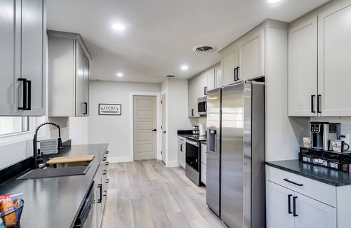 Round up your crew and stay at this Midland vacation rental, where modern accents meet West Texas charm. The 4-bedroom, 3-bath home strikes a balance between comfort and convenience, with proximity to area highlights, including the Petroleum Museum, Wagner Noël Performing Arts Center, and local Tex-Mex favorites. After exploring, fire up the grill, relax by the fire, or play some air hockey and foosball. Secure your dates today!