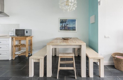 We adore this large living space, with a big sofa right in front of the TV and a pretty set of doors straight out into your wonderful garden! You can enjoy views straight out to the sea as you whip up a treat in the kitchen, with induction hobs, a large fridge/freezer, coffee machine, dishwasher and tons of equipment to make your stay here a breeze! There’s a dining area right alongside this, in addition to a stylish alfresco dining area on the terrace, so you can take your pick each mealtime.