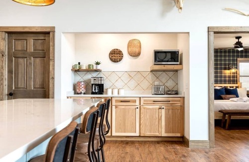 Come experience this 3,000 sq ft. five bedroom, three bath home that has two outdoor patios, grill, propane fire pit & solo stove wood burning fire pit, arcade games, board games, a beach area overlooking a man made lake (non motorized), paddle board, kayaks and a fun Cowboy themed home!