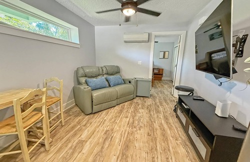Just 0.3 miles from the beach, this one-bedroom retreat is perfect for couples looking to relax and explore. This space is cozy and private, designed for unwinding after a day of sunshine or a round of golf.