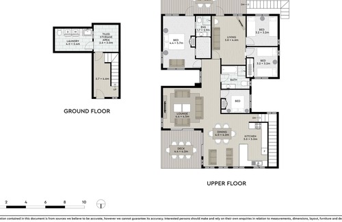 There are two large decks for entertaining, a modern kitchen. The main living space is large. There is a second living space ideal for children. The main bedroom has a double bed, sofa bed and an ensuite. There is a second bedroom with a double bed. The two smaller bedrooms have 2 king single beds each. The laundry, an additional toilet and an outdoor shower (handy for use when back from a trip to the beach) are downstairs.