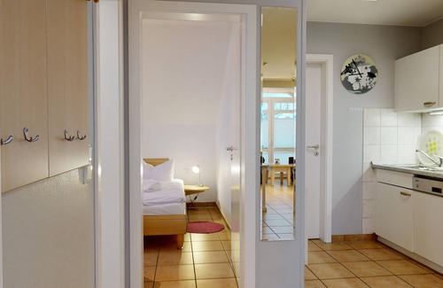 Equipment of the comfort apartment in the 2. First floor (3 rooms / 60 m²): • Living room with comfortable sofa bed (for 1 persons), satellite TV, DVD and CD player, stereo radio, dining area, Wi-Fi Internet connection • Kitchen with ceramic hob, dishwasher, microwave , Coffee machine and Nespresso machine, etc • 1 bedroom with an exclusive box spring bed, wardrobe and TV, blackout possible through exterior blinds • 1 bedroom with a double bed (2 mattresses a 90 x 200 m) and wardrobe • Bathroom with shower, toilet, hairdryer, make-up mirror, Underfloor heating and outside window • furnished balcony Outside: • parking spaces • barbecue Other: • in season (summer) weekly bookable (Sun-Sun) • minimum rental New Year's Eve 5 nights and Easter 3 nights • Non smoking apartment • lockable bike room • pets are not allowed included services: • For the apartment is in the summer on the beach a beach chair with the inscription Meernixe Whg. 15 available (time 1. May to 30. September) • Parking • Additional costs Cot and high chair on request (registration required at booking) Additional costs when booking or on site: • Buffet breakfast on request in the hotel opposite (fee) • Tourist tax according to local statutes (on arrival / key handover on the spot always in cash )