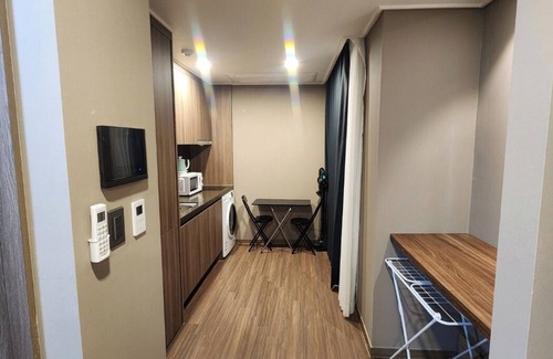 Escape to this charming apartment in picturesque Busan. This delightful space features 1 cozy bedroom with a queen bed, a crib, and a child bed. The bathroom offers a refreshing shower and a hairdryer for your convenience. Additionally, there is a lovely office area with a crib for any work or relaxation needs. Experience a peaceful stay surrounded by modern amenities like heating and AC. We look forward to hosting you at our place.