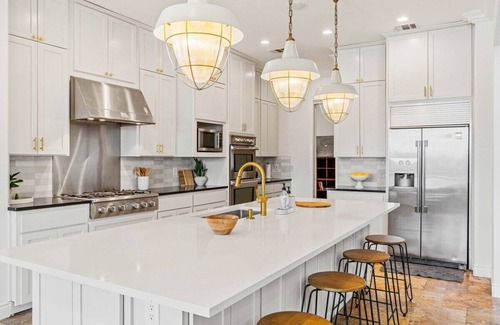 Fully Equipped Kitchen | Kenmore 6 Burner Gas Cooktop | Kenmore Pro Double Wall Oven | Microwave | Cuisinart Single Serve + 12 Cup Coffee Maker | Dishwasher | Refrigerator/Freezer | Dishes & Utensils