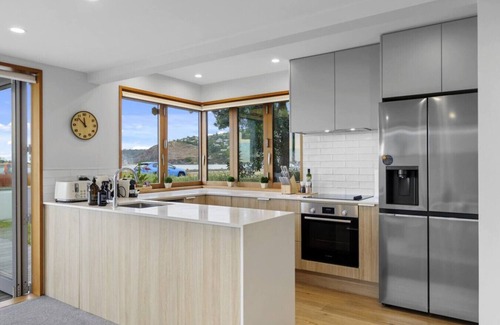 This three-bedroom coastal gem seamlessly merges contemporary luxury with natural serenity. Designed to harmonise with its peaceful surroundings, it offers comfort and stunning views. Nestled on the waterfront, the house emits elegance and modernity. Whether you seek a relaxing family retreat, a romantic escape, or a celebration with friends, immerse yourself in this waterfront residence.