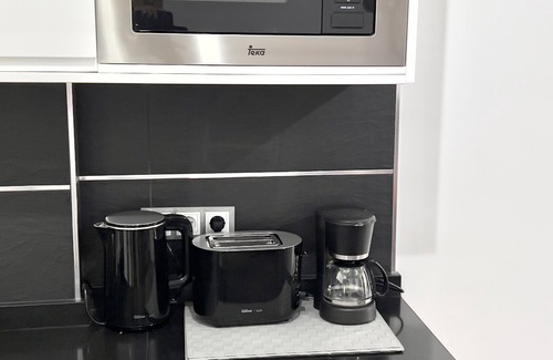 It has a beautiful contemporary kitchen equipped so that you can cook when and how you want. You will have an oven, microwave, cooking plate and even a washing machine.