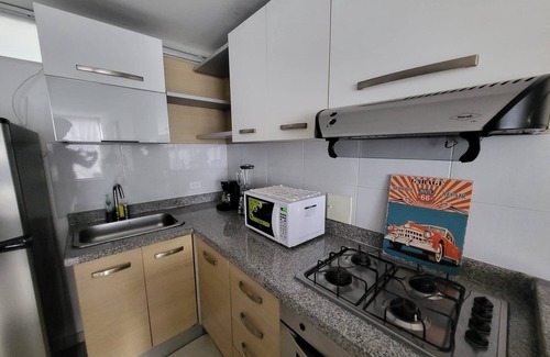 Beautiful furnished apartment in La Flora neighborhood at the north of Cali. Located close to Chipichape Shopping Center, La Flora park, Yumbo industrial zone, nightclubs, bars and restaurants and only at 20 minutes to the Alfonso Bonilla Aragón International Airport. It has 2 bedrooms (1 with air conditioning, another with ceiling fan), 1 bathroom, dining room, 1 sofa bed, TV, kitchen, 16 piece dinnerware set washing machine, microwave oven, clothes iron with ironing board.