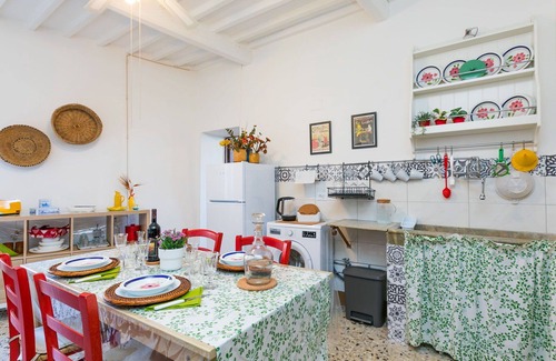 The historic Casa Corte Torrini offers a vacation rental opportunity in the heart of the charming village of Riparbella, Italy. This two-story, semi-detached home boasts a central yet quiet location, ensuring a peaceful stay amidst the region's rich cultural heritage. Guests can enjoy the convenience of weekly linen and towel changes, as well as reliable Internet Wifi access.