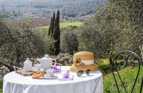 This characterful holiday apartment is part of an imposing 19th century estate in the picturesque hills west of Siena. Here you will be greeted by a lovingly furnished interior with historical flair. Prepare your favourite meals and plan your adventures over relaxed meals at the inviting dining table. After an eventful day, you can spend time together on a games evening or immerse yourself in your holiday reading on the cosy sofas.
