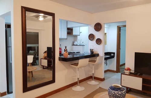 This one-bedroom apartment is located in a middle-class region, Jardim Armação, in front of the beach and close to Salvador's excellent restaurants. Public transport is available right in front of the building, from where you can reach the main districts of the city. This is a modern building of high standard, which has an excellent gym, a large pool on the ground floor, a sauna, and a rooftop whirlpool with a beautiful view of Salvador's waterfront.