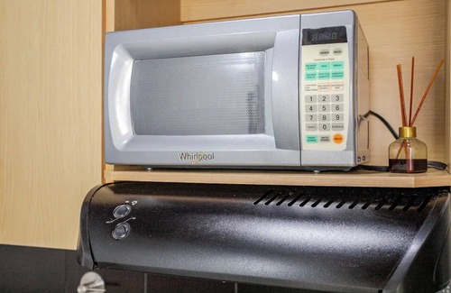 The kitchen is equipped with a stovetop and a refrigerator, as well as a coffee maker, a microwave, and cookware. Connect to the WiFi, or get cozy in front of the cable/satellite TV. Bathroom amenities include towels, toilet paper, and soap. And there's access to laundry facilities, so you can even pack a bit lighter. Other amenities at this 1-bedroom, 1-bathroom rental include bed sheets, a desk, an ironing board, and a desk chair.