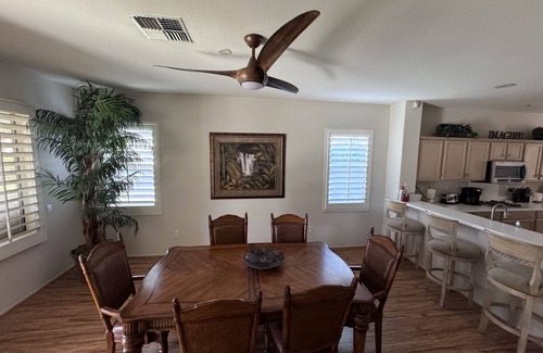 Beautiful Gated, 3 bed 2 bath! Golf 45 holes, Tennis, Pickleball & more! has 3 Bedrooms , 2 Bathrooms, and max occupancy of 6 people. The minimum rental for this property is 1 nights, but this can change depending on the season you plan on staying. Previous guests have given good rated it, and VRBO labeled it a top-rated House because of the excellent services rendered by the owner or manager of this House, and has consistently provided great experiences for their guests. Most families or guests that use it recommend it to their friends and some of them are repeat guests. House has a friendly neighborhood, and the Desert Palms has interesting places to visit. If you want to learn more about the House in Desert Palms, such as places to visit and things to do nearby, you can check below to learn more.