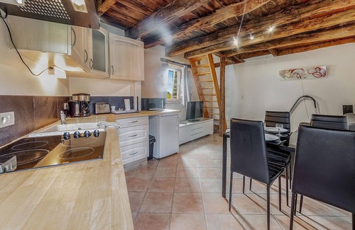 This cosy holiday home in Mont-Dol offers comfortable furnishings and invites you to spend relaxing hours in a rural setting. The warm stone walls and lovingly designed rooms radiate a romantic atmosphere that will make you feel like you are far away from everyday life. The private terrace is ideal for breakfasting in the morning sun or watching the stars in the evening. Here you will find peace and nature for unforgettable days.