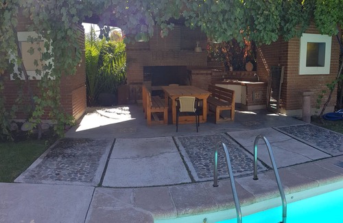 Beautiful large house with a huge garden, swimming pool and wide common areas ideal for big familie or big groups. Located in Chacras de Coria, a neighborhood of wineries and vineyards, known for its wines and its cooking.