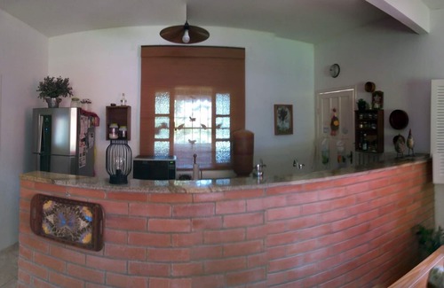 barbecue, stove and wood oven. Lawn and wooded. Walled. Lots of peace and activity. Ceiling fans, Wi-Fi, electronic gate. Very green area, close to the beach. Between and Piúma. Kiosks with drinks and food from the region. Atlantic forest. Wild animals.