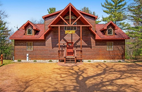 With a prime location on Castle Rock Lake with a sandy beach and walk-in waterfront access, two ponds, and three spacious levels, this home is the perfect combination of comfort and convenience - ideal for a long vacation with the family or group of friends! When you're not out boating and fishing or exploring the many attractions down in Wisconsin Dells, which is just a quick 30 minute drive, fire up the private gas grill on the spacious patio to cook up some terrific barbecue while you watch for visiting wildlife and let the kids romp around the large, two-acre yard. Inside, you'll find a well-appointed living space with comfortable furnishings and knotty pine features. Watch a movie on the flatscreen TV and then use the well-equipped, full kitchen to prepare your favorite meals. You can enjoy your creations at the handsome dining table then clear everything away for a fun family game night. The lower-level offers a walk-out basement and an entertainment area equipped with an arcade game, foosball table, game table, flatscreen TV, plus lots of comfortable furniture - the ideal place for older kids to hang out while you enjoy a few libations with friends on the spacious deck. Spend the day on the lake then gather everyone around the firepit for an evening of toasted s'mores and good company.