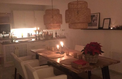 Do you want to vacation in a wonderful house directly by the sea where you hear the waves' sound to the morning coffee? Our house is located 30m from the water's edge and it is in direct contact via some steps from the terrace. 150 sqm, two floors, large living room with open kitchen, one bedroom and one bathroom on the ground floor and large terrace directly out from the living room towards the sea. Upper floor three large rooms 2 bedrooms and a TV room) and one bathroom and balcony out from a room. All bedrooms except one have large windows with sea views the other has beautiful mountain views.