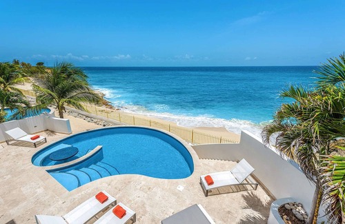 Mumbai's exotic name reflects its exotic location, the private village of Cupecoy's Shore Pointe right on the French/Dutch Border. Like an exquisite miniature version of a gleaming white Greek island, the villas of Shore Pointe are individual, elegant gems within a luxurious gated community. Mumbai is set apart by a beautiful miniature garden filled with palms and fragrant flowers. The entryway continues the tropical plantings, setting the stage for a beautiful contemporary decor framing the stunning view of the Caribbean Sea and the outer islands.