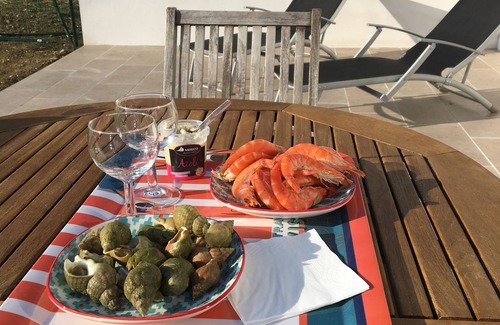 Comfortable house with a large enclosed garden (600m²), close to the market (300m) and the beach (500m). Internet access - Wi Fi.