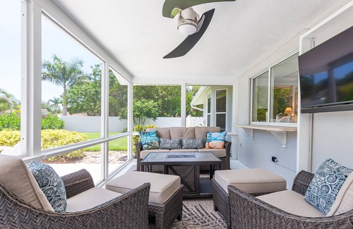 Beautiful home located minutes from Siesta Key Beach in a quiet and beautiful neighborhood. This house has been refurnished , So everything is brand new. This home is in walking or biking distance to great restaurants, or walking and biking in the great neighborhood. Enjoy the siesta village stores and restaurants and absolutely beautiful sunsets at siesta beach. Every bedroom has a HD smart TV and wireless internet throughout the home. Enjoy cooking out on the new weber grille and relaxing out on the lanai watching your favorite show on the mounted TV or listening to music and just enjoying the company of your friends and family. Take a swim in the salt water heated pool, the pool is heated Nov 1 through Feb 28 at 84 degrees. Create great memories as you relax and enjoy yourself in the Siesta Key area. Take a bike ride to the beach on one of the bikes that are provided for you to use throughout your stay. Enjoy Sunday evenings at siesta beach at the drummers circle.