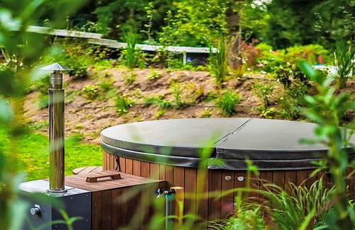 The property is designed for non-smokers only, ensuring a pleasant and smoke-free environment during your vacation. As a unique feature, the accommodation has its own small cinema, perfect for movie nights. Outdoor relaxation is also available with a hot tub in the garden. Please note that bookings are accepted for holiday purposes only, just an example. The property is named "Specht" and offers comfortable furnishings throughout.