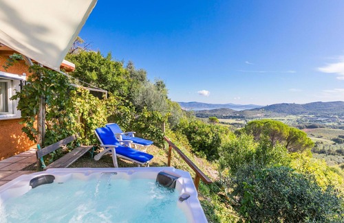 Beautiful private villa for 6 guests with A/C, hot tub, WIFI, TV, patio and pets allowed is located in Monte Argentario. Beautiful private villa for 6 guests with A/C, hot tub, WIFI, TV, patio and pets allowed provides accommodation, featuring TV, Sports/Activities, Kitchen, among other amenities. This House features TV, Sports/Activities, Kitchen, to make your stay a comfortable one.